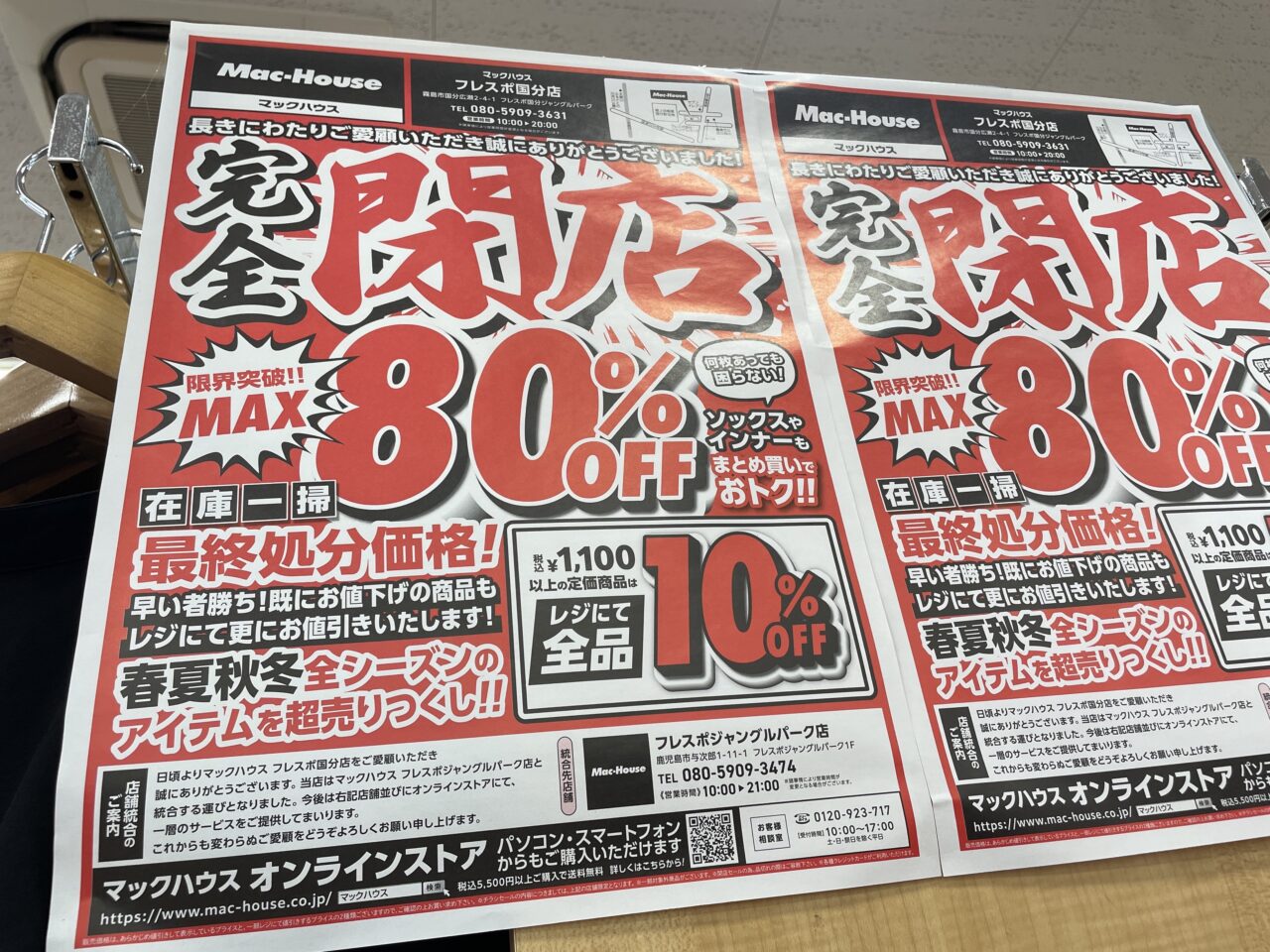 【霧島市】11月初旬に閉店…「マックハウス フレスポ国分店」が閉店セールを開催中です