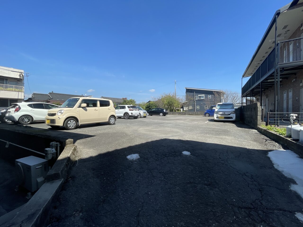 広い駐車場です。指定店舗の看板が立っていない白線枠内であれば停めてよいそうです。