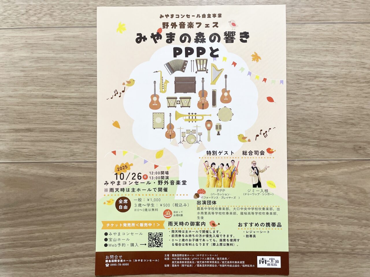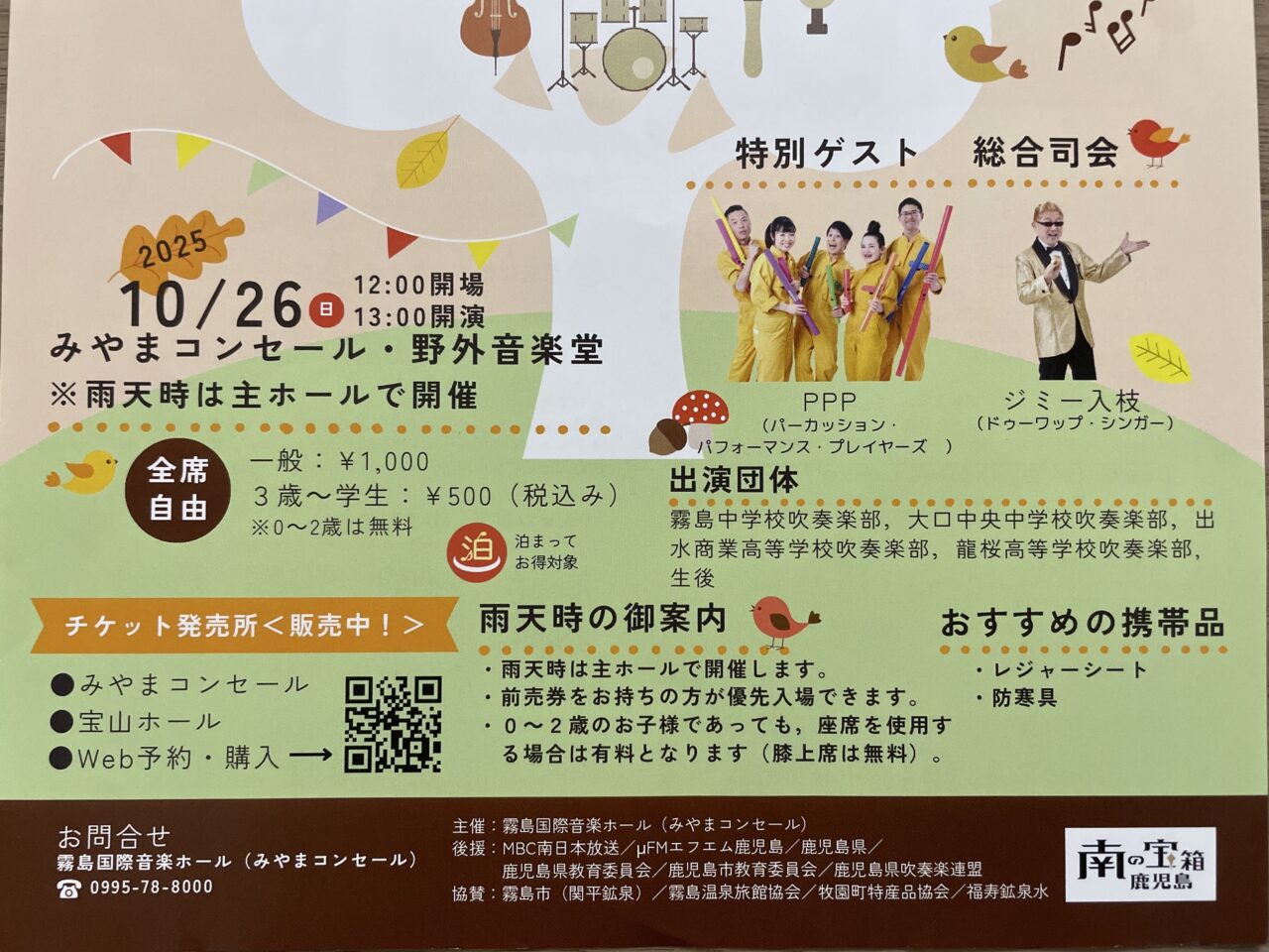【霧島市】10月26日(日)みやまコンセールで「野外音楽フェス~みやまの森の響き PPPと~」が開催されます