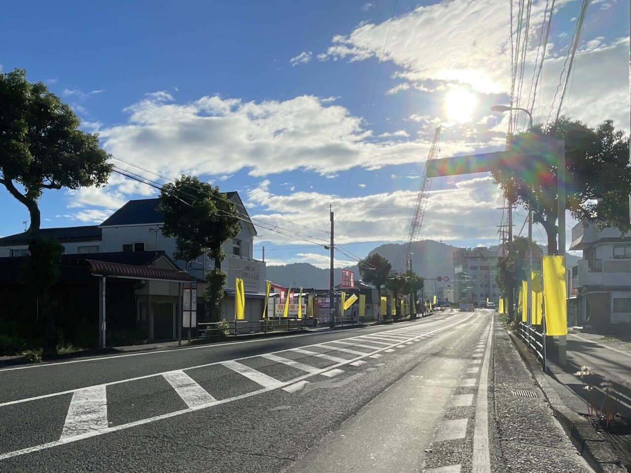 通常はラッシュ時には大渋滞となるほど、交通量の多い通りです。網掛橋が通行再開されるとまた街も活気を取り戻すことでしょう。復旧工事に携わった方々に改めて感謝です。