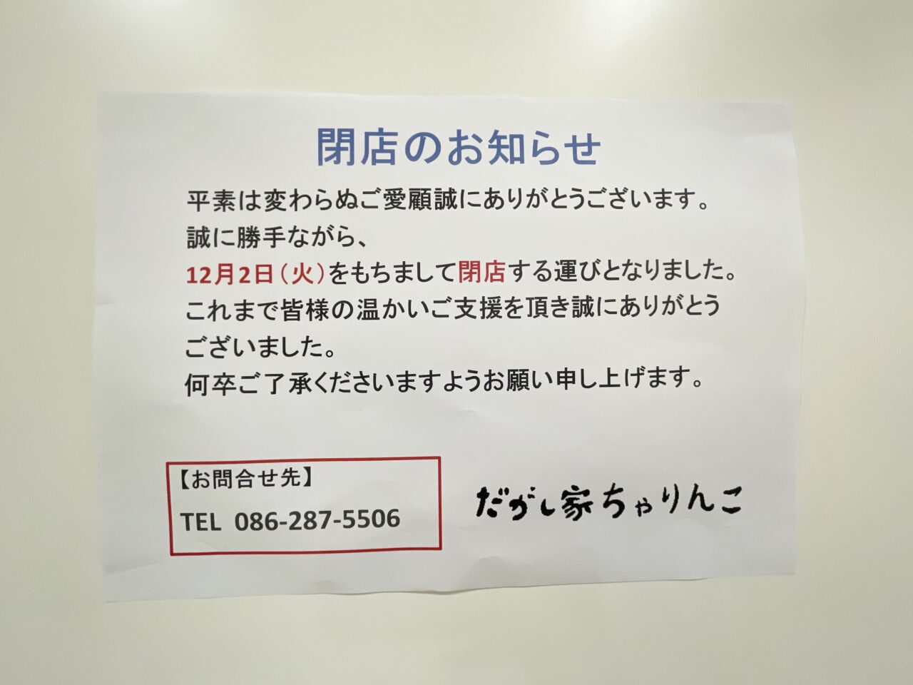 「だがし家ちゃりんこ」は、さまざまな種類の駄菓子がわんさかとあり、親子連れの方や、駄菓子ファンの大人の方にも人気のあったお店でした。閉店は残念なお知らせです。