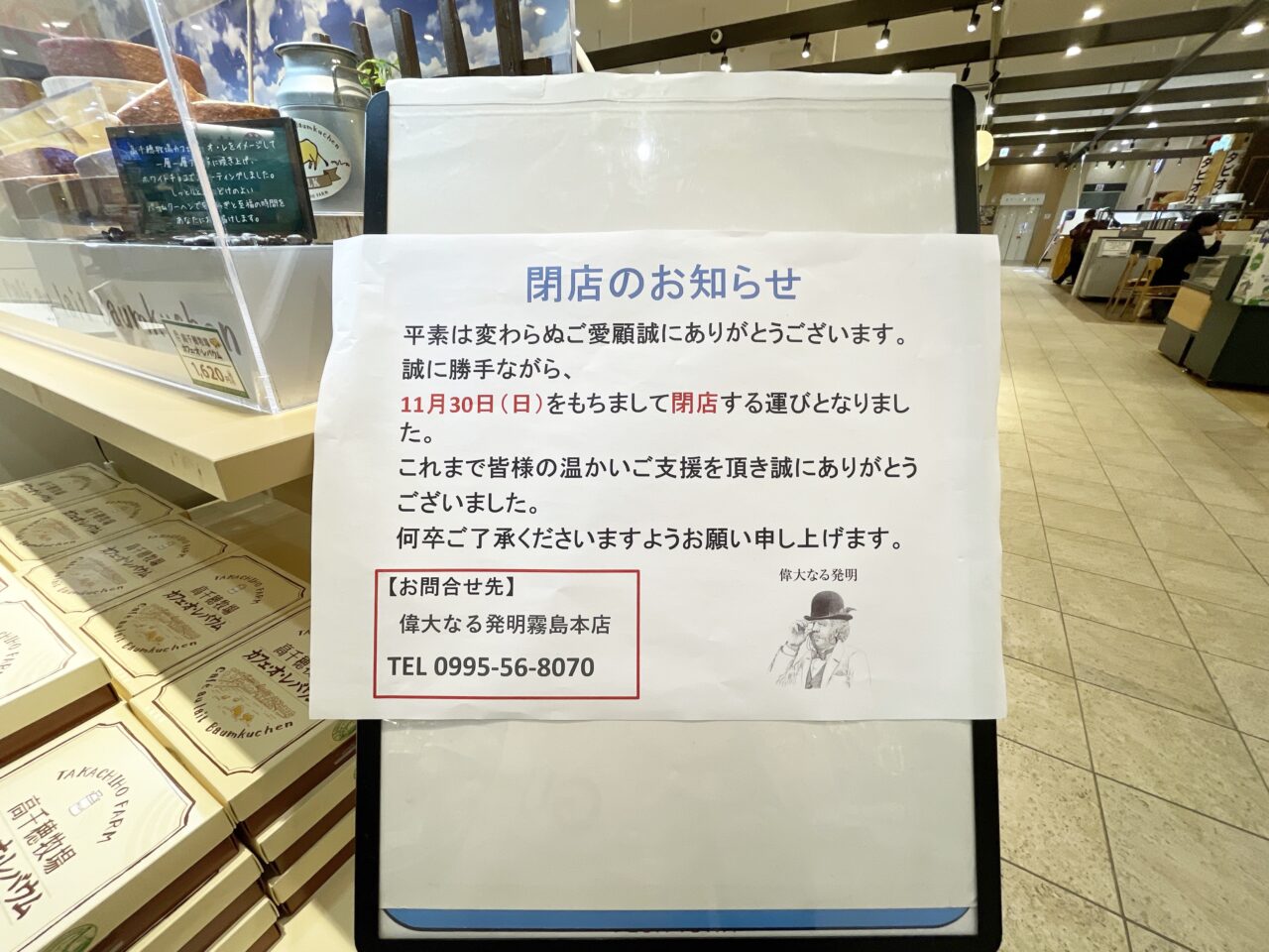 【姶良市】「イオンタウン姶良」内にあった「だがし家ちゃりんこ」と、高級食パン専門店の「偉大なる発明」が閉店