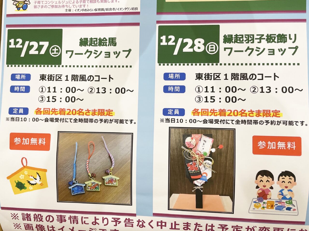 【姶良市】12月27日(土)・28日(日)「イオンタウン姶良」で、絵馬と羽子板飾りのワークショップが開催されます