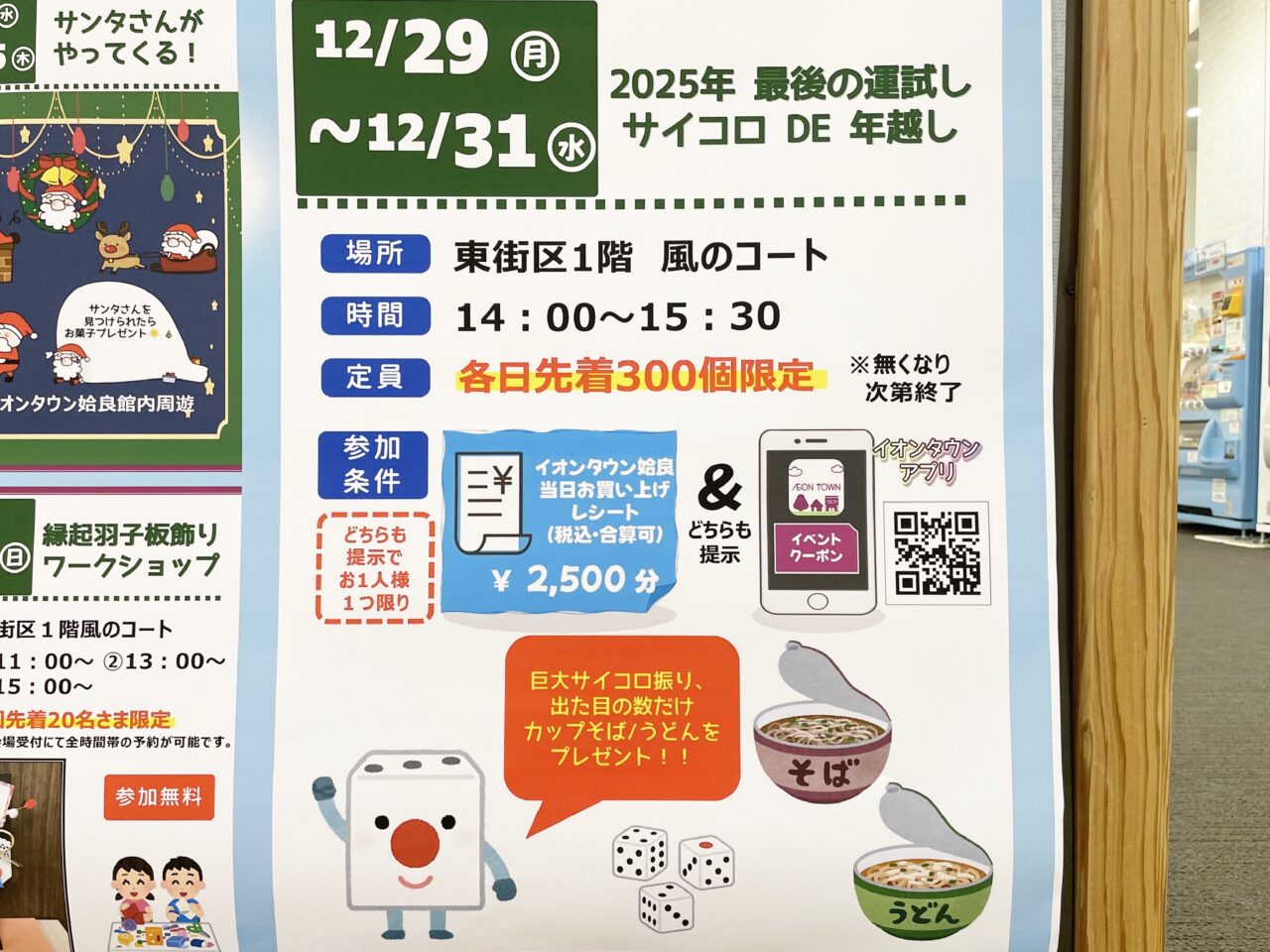 12月29日(月)〜31日(水)は、「2025年最後の運試し サイコロDE年越し」も開催されます。