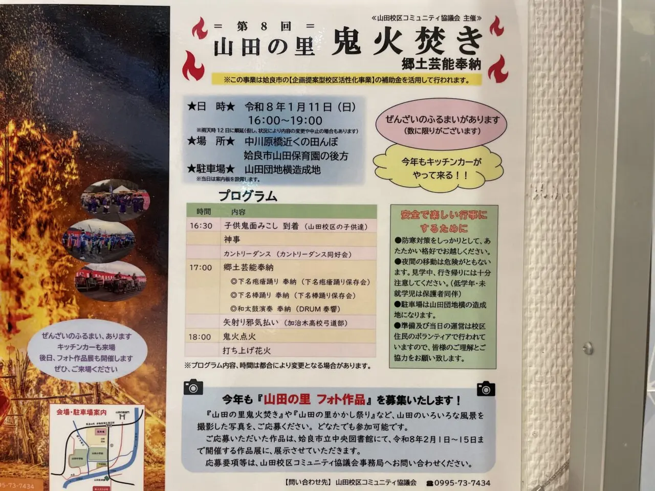 2026年も鬼火焚きの時期がやってきました。姶良市では2026年1月11日(日)に中川原橋近くの田んぼ(山田保育園の後方)で行われます。ぜんざいのふるまいや、キッチンカーの来場が予定されています。足を運んで1年の無病息災や家内安全を祈願してみてはいかがですか。