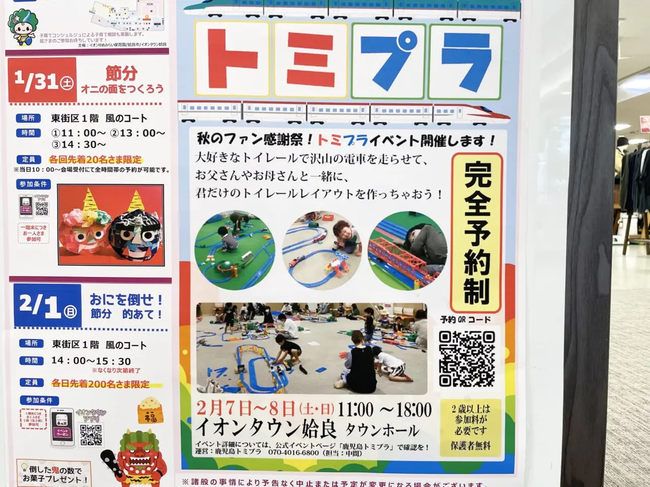 2026年2月7日(土)・8日(日)、「イオンタウン姶良」で、鹿児島トミプラ「冬のファン感謝祭」が開催されます。自分だけのトイレールレイアウトを作って、たくさんの電車を走らせることができる楽しいイベントです。完全予約制ですので、気になる方はお早めの予約をお忘れなく。