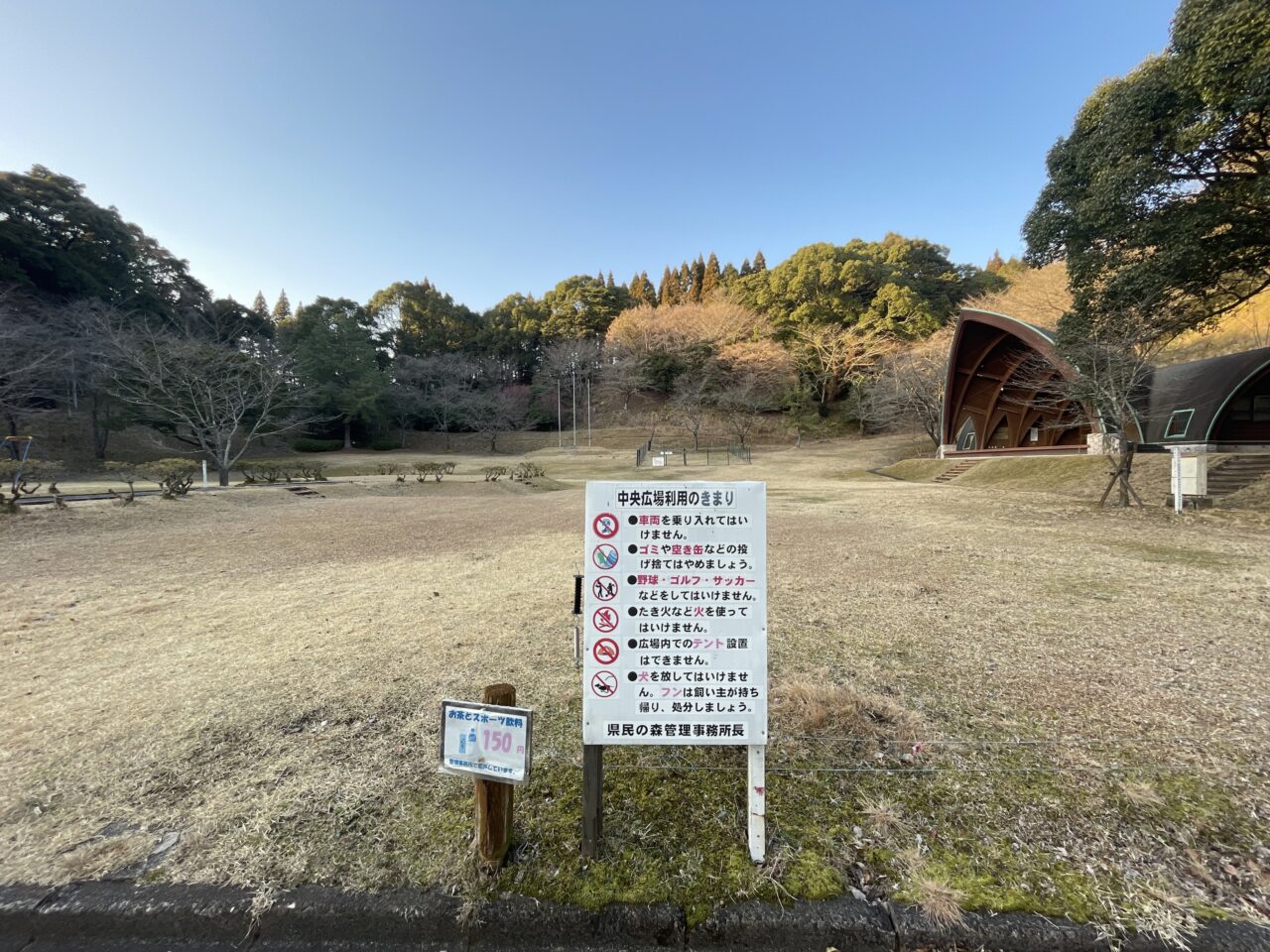 野外音楽ステージがあるこちらが中央広場です。県民の森管理事務所のすぐそばにあります。