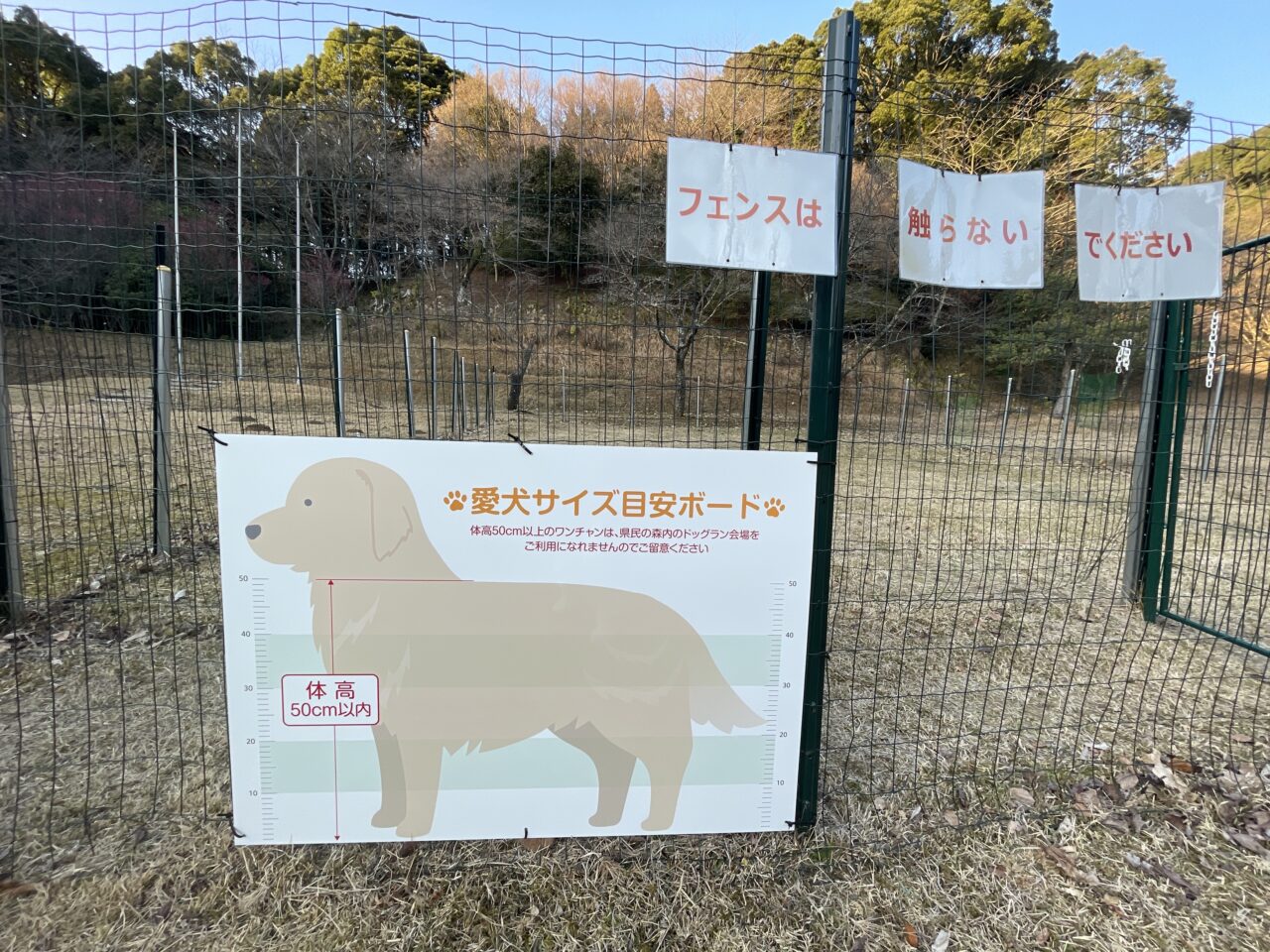 愛犬サイズ目安ボードに注意書きがありました。残念ながら、体高50センチメートル以上のワンちゃんは利用できないそうです。ご注意ください。