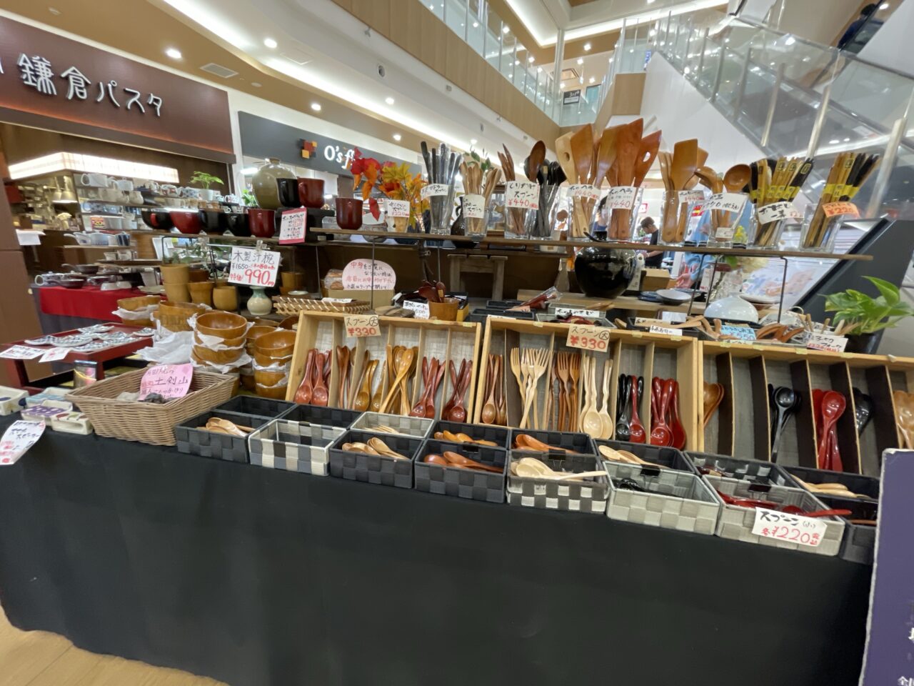 木製のスプーンやフォークなどのカトラリー類もあり、陶器以外の商品も陳列されていて、販売の種類が豊富です。