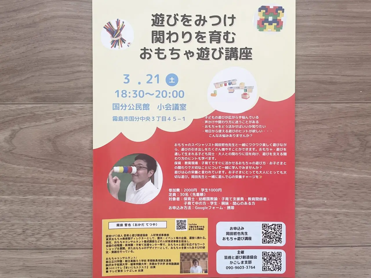 【霧島市】3月21日(土)「国分公民館」で「遊びをみつけ関わりを育む おもちゃ遊び講座」が開催されます