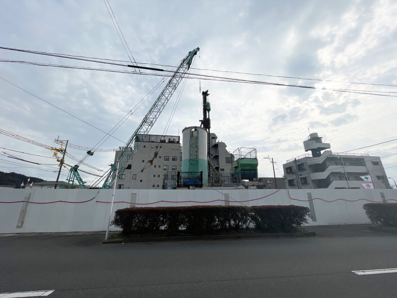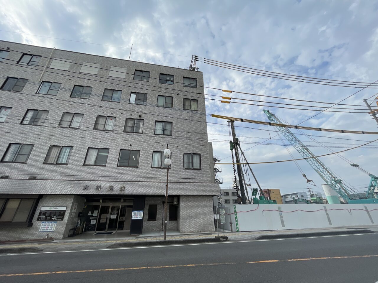 工事の場所は大井病院の隣です。元々は大井病院の駐車場とセンサー薬局があった場所です。現在の建物と同等くらいに感じられる、とても広い敷地面積です。