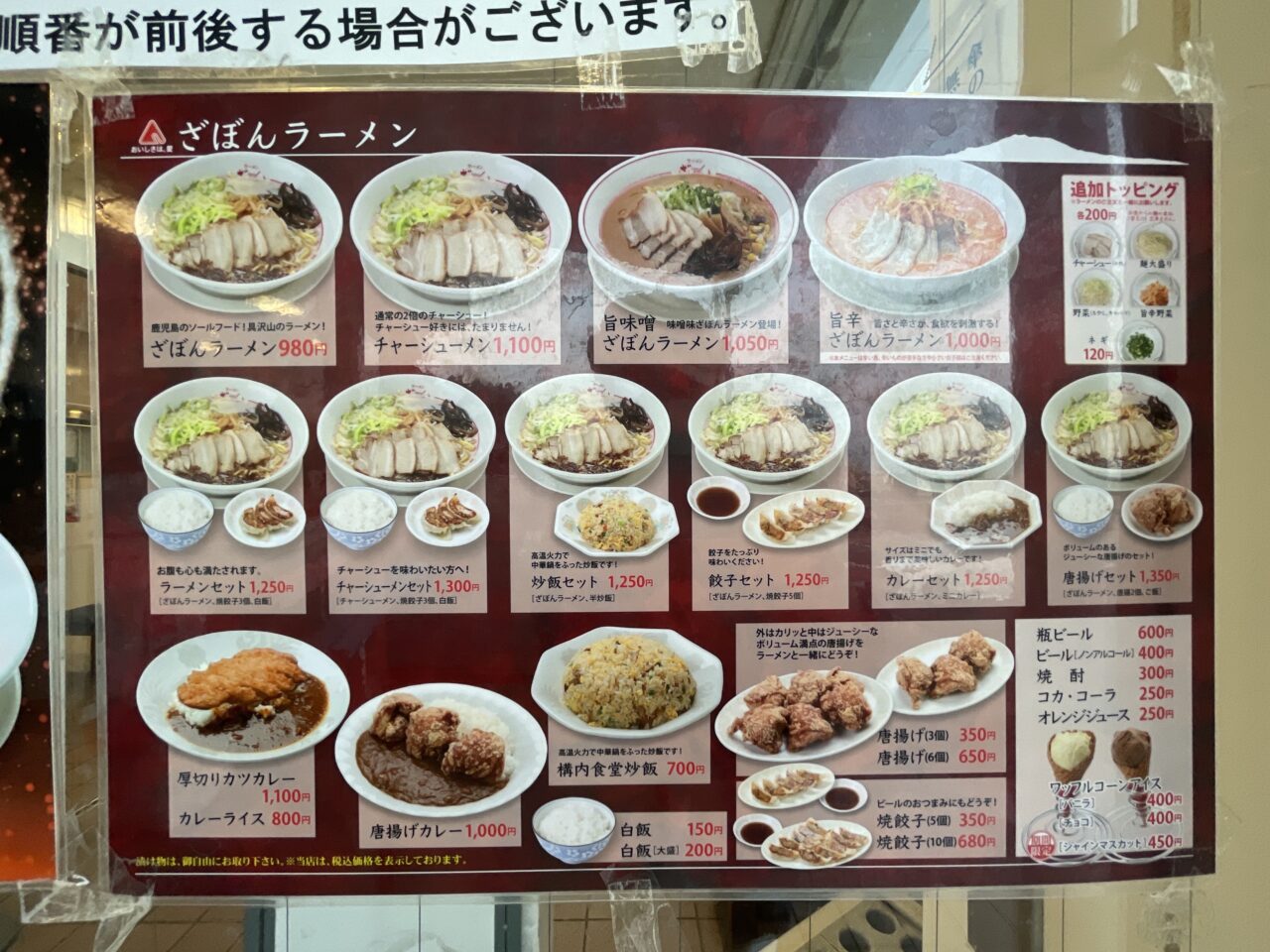味噌味の「旨味噌ざぼんラーメン」もありました。こちらは溝辺店限定の文字はありませんが、他店舗で提供されているのかはわかりかねます。